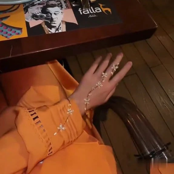 Embrace subtle elegance with this Floral Hand Bracelet, designed with delicate blossom motifs linked along a sleek, comfortable chain. Its graceful, nature-inspired design adds a soft feminine touch to your hand, making it perfect for everyday charm or special occasions.